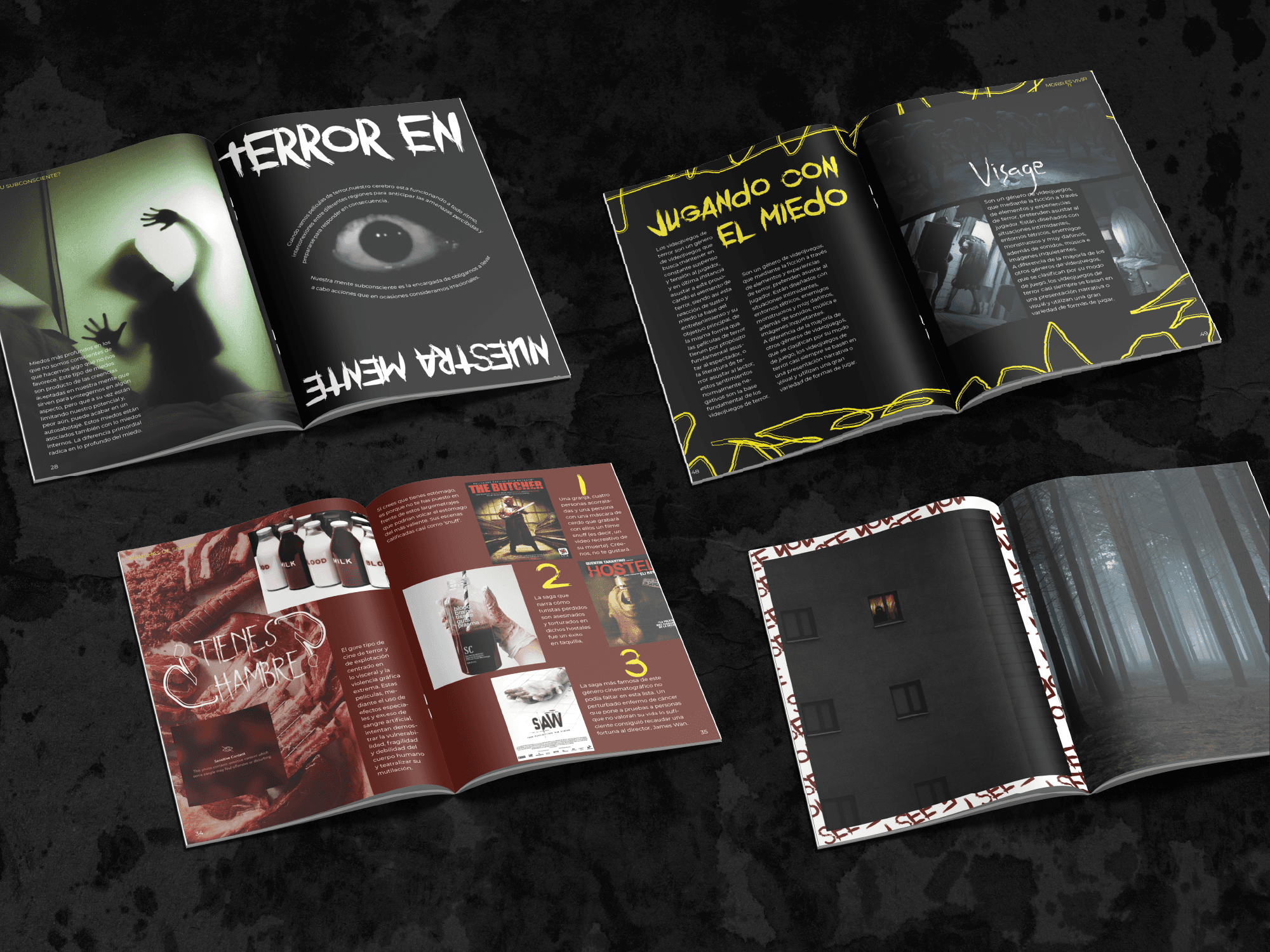 A través de fotografía intervenida, composición experimental y tipografía expresiva, la revista construye una experiencia inquietante y estética para quienes disfrutan sumergirse en lo desconocido.